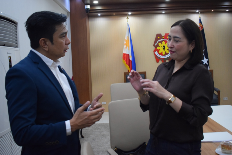 Sa kanilang maikling pag-uusap, tinalakay ni Komisyoner Mendillo ang pangunahing probisyon ng Kautusang Tagapagpaganap Blg. 335, na nagtatakda sa paggamit ng wikang Filipino sa lahat ng opisyal na transaksiyon, komunikasyon, at korespondensiya sa pamahalaan, pati na rin ang implementasyon ng Batas Republika Blg. 11106, na nagtataguyod sa paggamit ng Filipino Sign Language (FSL) sa mga pampublikong serbisyo.